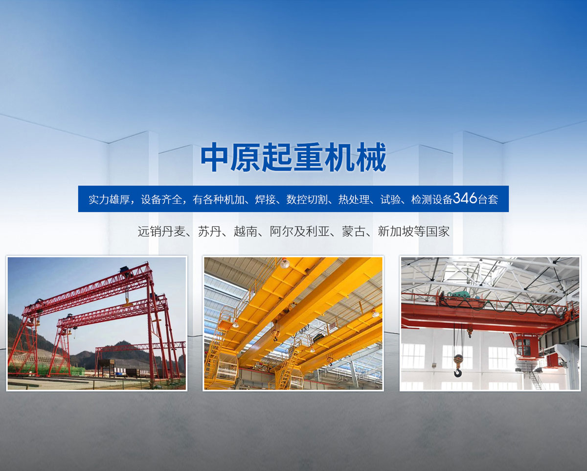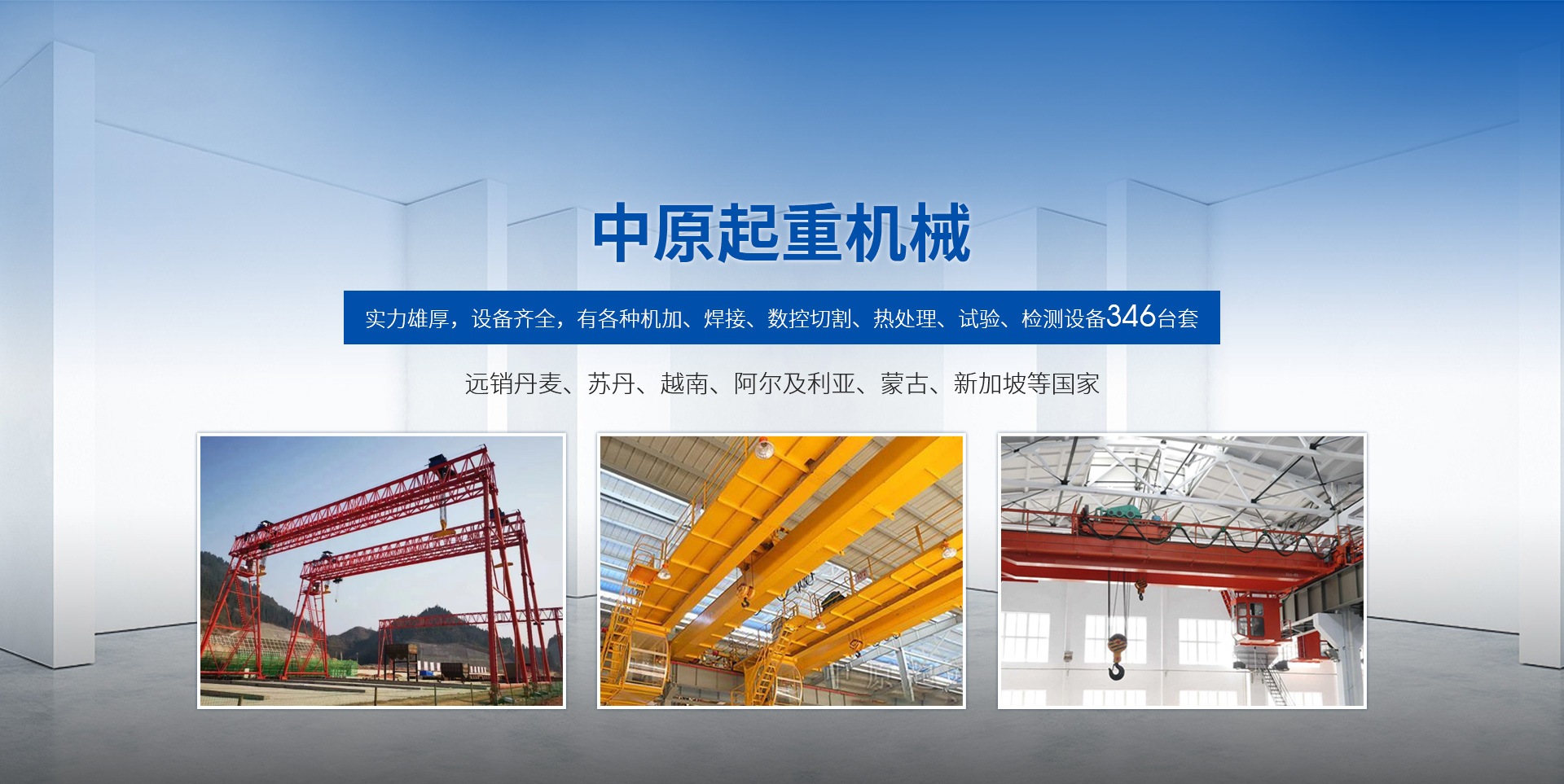 新鄉(xiāng)市中原起重機械有限公司成立于2000年,地處中原,輻射全國28個省市自治區(qū),設(shè)外埠經(jīng)銷處、辦事處268個。產(chǎn)品行銷工礦、建材、化工、冶金、電力、交通、鐵路、油田、港口等各個行業(yè)。遠銷丹麥、蘇丹、越南、阿爾及利亞、蒙古、新加坡等國家。  公司實力雄厚,設(shè)備齊全,有各種機加、焊接、數(shù)控切割、熱處理、試驗、檢測設(shè)備7臺;有機加工、熱處理、單、雙梁橋門機生產(chǎn)、檢測、安裝等9個車間,研究中心、運輸公司、安裝維修服務(wù)公司等機構(gòu),?  主要產(chǎn)品有:LD型1~20噸電動單梁起重機系列產(chǎn)品;5~600噸通用橋式、門式、冶金、上旋轉(zhuǎn)下旋轉(zhuǎn)電磁吊、絕緣、抓斗、防爆起重機系列產(chǎn)品;LH3~100噸葫蘆雙梁系列產(chǎn)品;MH5~32噸葫蘆門式系列產(chǎn)品;0.5~40噸CD1、MD1鋼絲繩電葫蘆系列產(chǎn)品;HS1型0.5~20噸手動葫蘆系列產(chǎn)品;0.5~10噸環(huán)鏈電動葫蘆系列;0.5~40噸彎道電動葫蘆系列產(chǎn)品;裝卸橋、造船門機、架橋機、鑄造吊和水電大噸位起重機系列產(chǎn)品。  公司建立了強有力的質(zhì)量保證體系和生產(chǎn)過程的質(zhì)量控制系統(tǒng),嚴格執(zhí)行國家設(shè)計、生產(chǎn)標(biāo)準(zhǔn),有嚴格的生產(chǎn)工藝過程和標(biāo)準(zhǔn),嚴格的檢驗、檢測標(biāo)準(zhǔn)和手段。